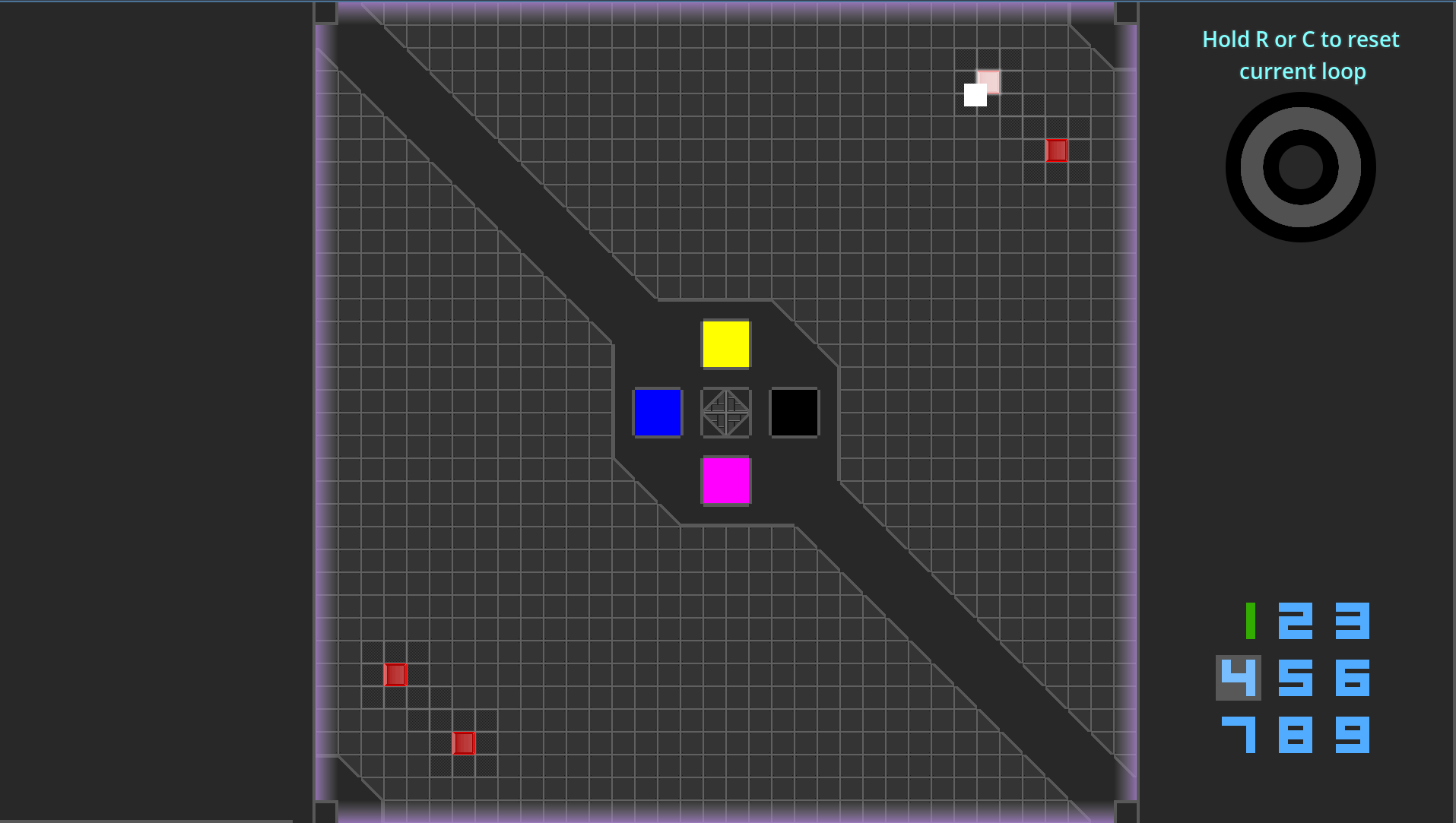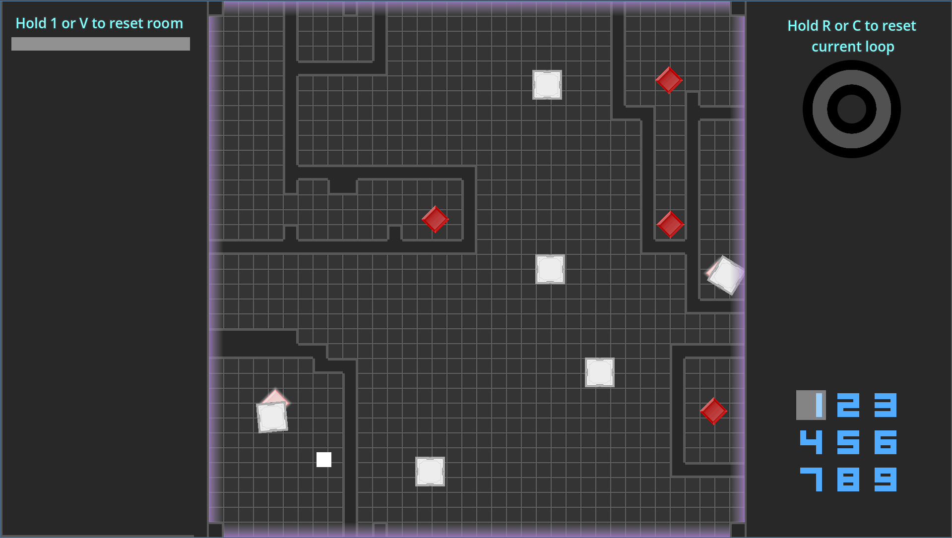 Your objective is to beat all of the puzzles in each of the 9 rooms in the grid and then make it to the center to escape the GridWrap. Although you can shift rooms in the center, you cannot solve the puzzle of any room located in the center, so move the map around wisely to beat this loop inspired puzzle game.